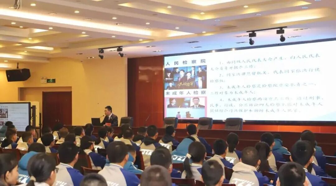 张北县人民检察院未检干警走进张北县职业技术学校,以“以宪为基护航青春”为主题开展普法宣讲。