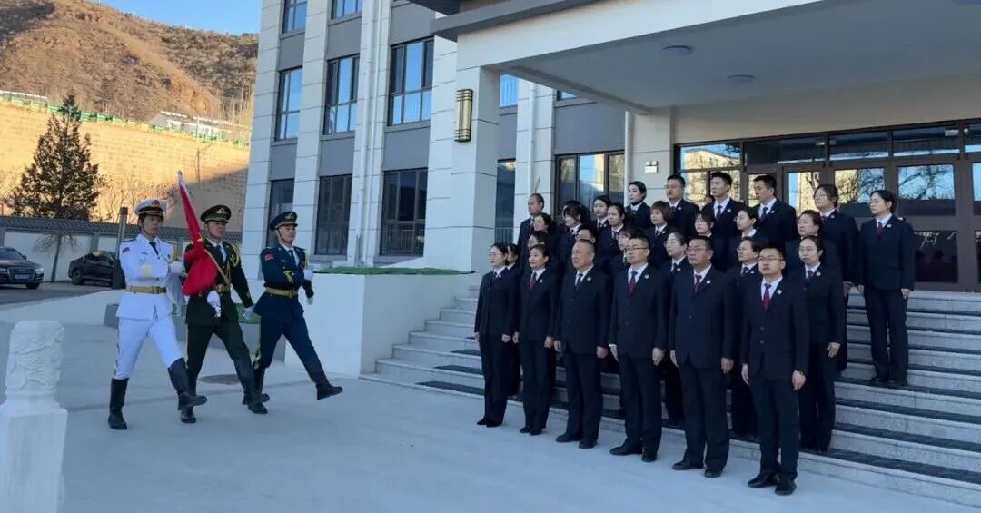 12月4日清晨,张家口市桥西区人民检察院全体干警迎着朝阳的霞辉,身着检察制服,整齐列队在国旗下,举行升国旗仪式。